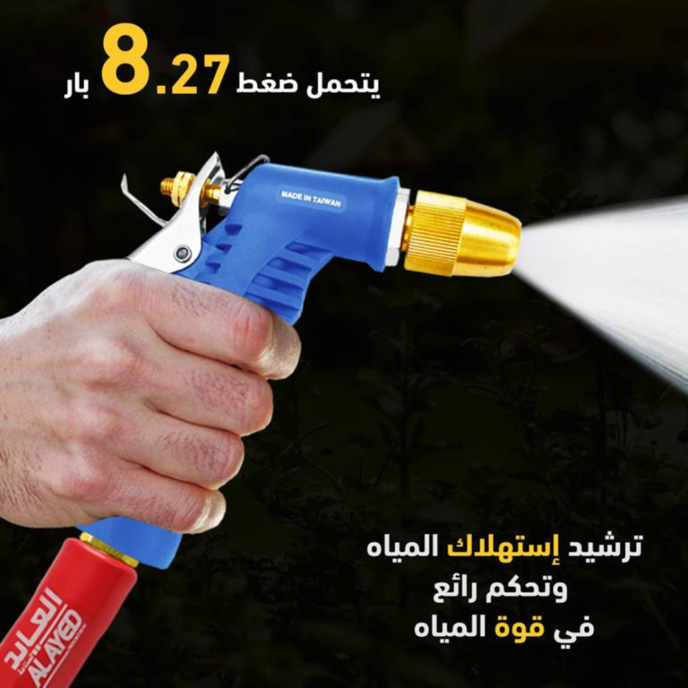 مسدس ماء أزرق لدفع وترشيد المياه ويمكن توصيلة مع خراطيم 1/2" - 3/4"