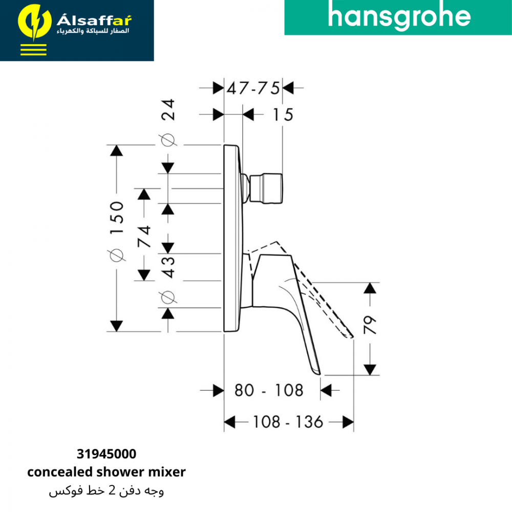- محول اتوماتيك للتغيير بين طاسة الدش وسماعة الدش أو الصباب.