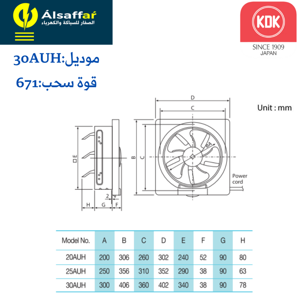 مروحة شفط جدارية بلاستيك KDK 30AUH مقاس 35*35 KDK