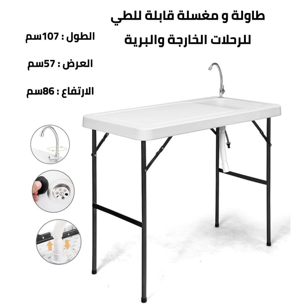 طاولة و مغسلة قابلة للطي للرحلات الخارجة والبرية 107سم