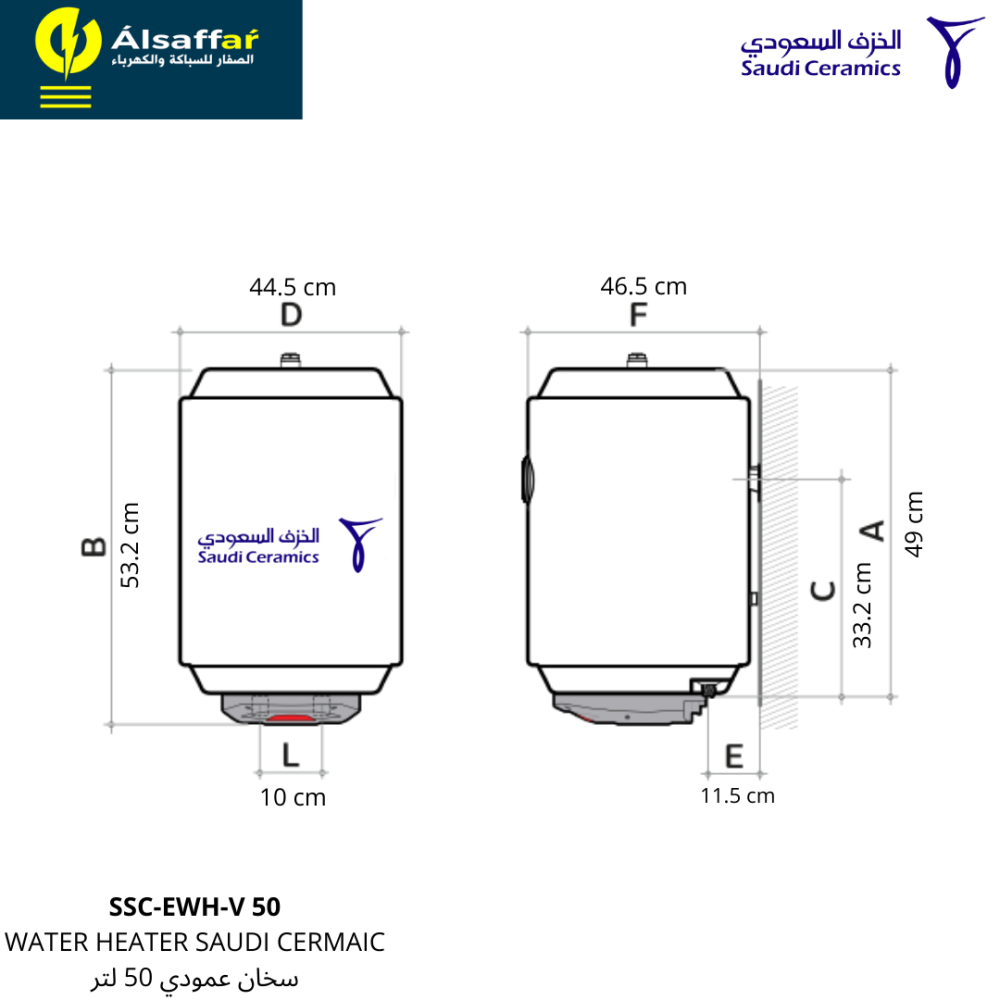 مميزات سخان ماء 50 لتر الخزف السعودي :