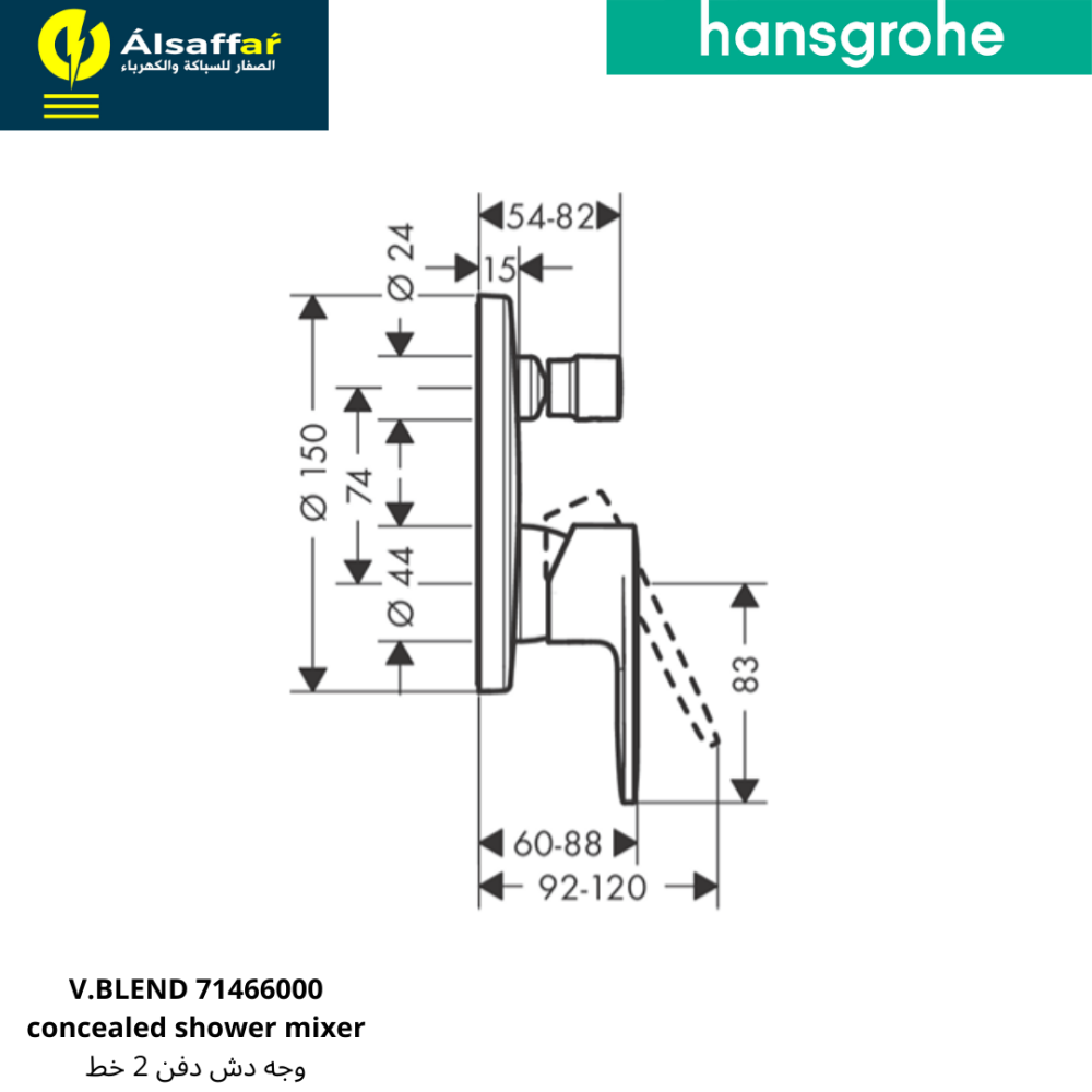 - محول اتوماتيك للتغيير بين طاسة الدش وسماعة الدش أو الصباب.
