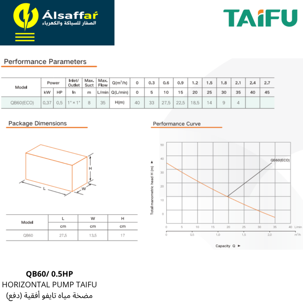 مضخة مياه تايفو QB60 0.5HP نص حصان