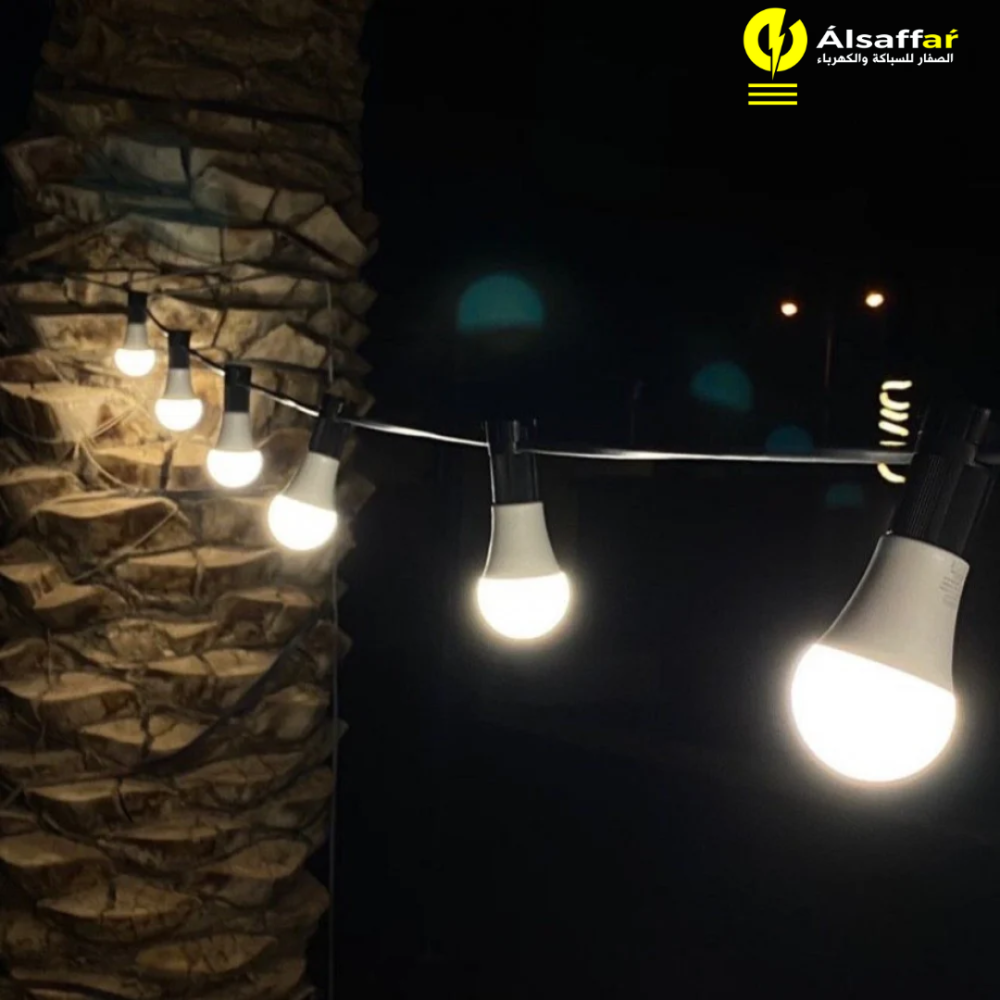استمتع بإضاءة راقية وعملية مع عقد الإنارة المصمم ليجمع بين الجودة العالية والجمال العصري. مثالي لتزيين المجالس، الحدائق، الكافيهات، والفعاليات الخاصة.