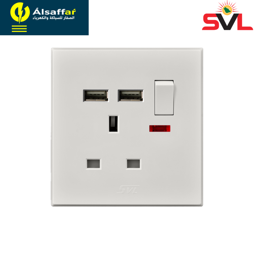 -الصنف: فيش مفرد 13 امبير بمفتاح ومنفذين شاحن USB